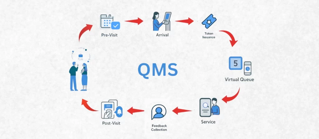 A digital queue management system is software that organizes and controls waiting lines using technology instead of manual methods.