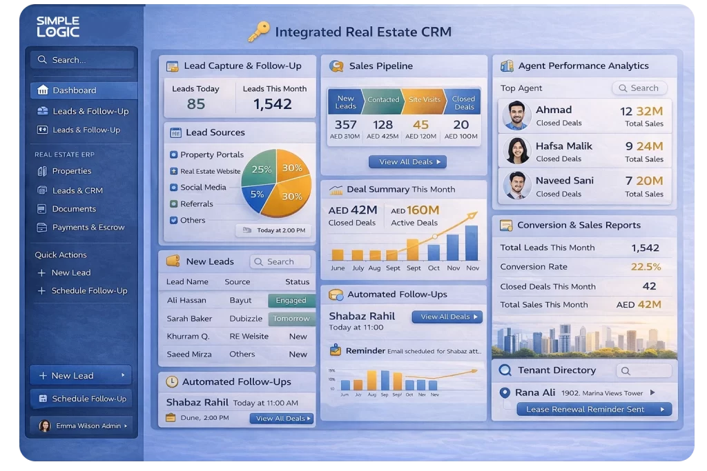 The UAE real estate sector operates with in one of the most advanced and regulated property markets in the world. The real estates based on the property management firms, Builders, Developer and real estate investors. They are handling complex portfolios, including residential towers, commercial projects, mixed use developments and upcoming projects.